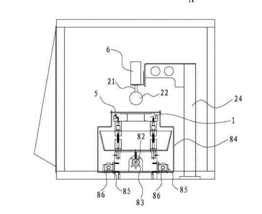 [0019]在一些實施方式中,清洗槽的底部凹設(shè)有容納孔,容納孔能夠容納板材樣品插入到容納孔中,容納孔的底部設(shè)有排液閥,清洗液供應系統(tǒng)供應的清洗液通過管道傳送到容納孔中,清洗液從容納孔當中漫出并流滿整個清洗槽。其有益效果是,設(shè)置容納孔后,可以方便樣品完全沒入到清洗液當中,這樣清洗槽就只需要在容納孔位置設(shè)置的較深,其它位置設(shè)置得較淺即可。否則的話如果需要讓樣品完全沒入清洗液中,就需要將清洗槽整體設(shè)置成很深。設(shè)置排液閥后,可以很方便排干清洗槽中的清洗液。