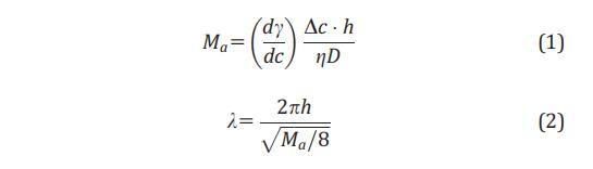 為了量化溶質(zhì) Marangoni 效應(yīng),25,26,30,31 我們估計 馬蘭戈尼數(shù) (Ma) 和馬蘭戈尼波長 (k).32