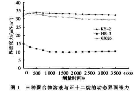 圖1三種聚合物溶液與正十二烷的動態(tài)界面張力