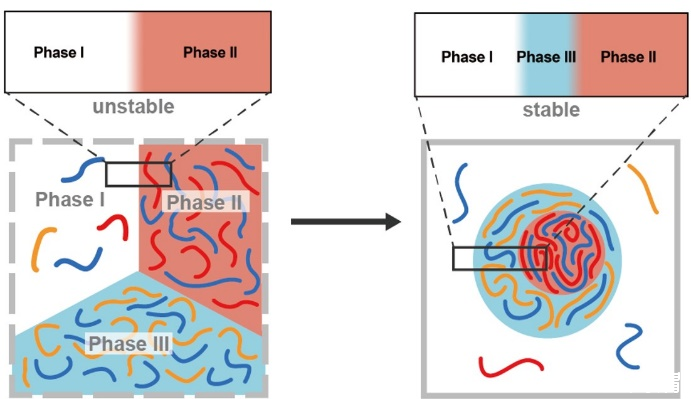 帶相反電荷的聚電解質(zhì)鏈在溶液中會(huì)發(fā)生液-液相分離,形成富含高分子的濃相(凝聚相)和幾乎不含高分子的稀相。這類復(fù)合凝聚現(xiàn)象與原始細(xì)胞模型、無膜細(xì)胞器的形成及生物分子的有序組裝結(jié)構(gòu)密切相關(guān),對(duì)理解生命體系具有重要意義。在液-液相分離過程中,界面張力是一個(gè)極為重要的物理性質(zhì),它決定了復(fù)合凝聚物的許多基本特征,對(duì)多個(gè)領(lǐng)域的應(yīng)用有著決定性影響。