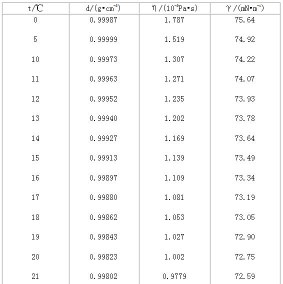 表3 不同溫度時水的密度、粘度及與空氣界面上的表面張力