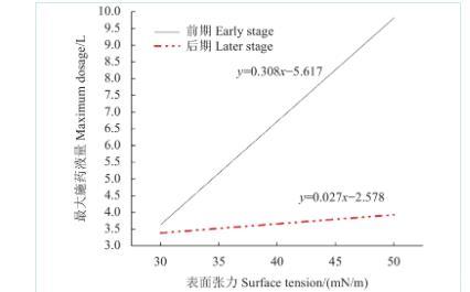 圖8藥液最大施用量與藥液表面張力的關系