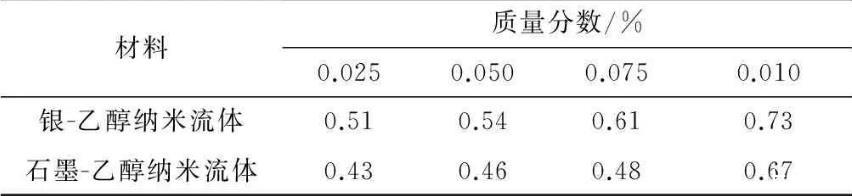 1)隨著質(zhì)量分?jǐn)?shù)增加到0.1%的過程中,納米流體表面張力下降了17%——25%,電導(dǎo)率卻升高了40%——60%.兩者的變化導(dǎo)致納米流體的τc/τH隨質(zhì)量分?jǐn)?shù)的升高呈現(xiàn)上升趨勢(shì)。