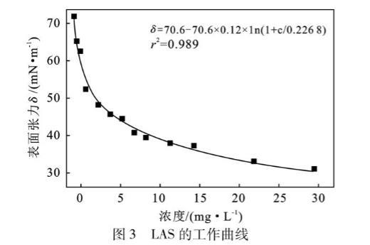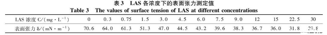 表3 LAS各濃度下的表面張力測定值