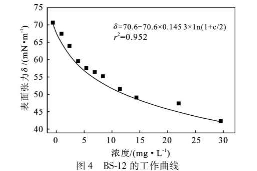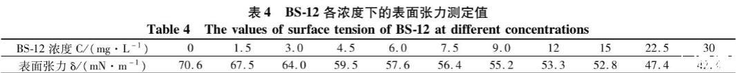 表4 BS-12各濃度下的表面張力測定值