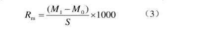 采用浸漬法并稍作改進。藥液配制方法同1.2.2節。采集蘋果成熟葉片,避開邊緣及褶皺處將葉片打成直徑為3.5 cm的圓形平整葉碟,計算葉碟面積(S)為9.62 cm2。浸漬前,用電子天平讀取葉碟初始質量(M0,g),用鑷子夾持葉碟完全浸入藥液3 s后取出,垂直懸置待不再有液滴滴下時讀取載液后質量(M1,g),根據公式(3)計算最大持留量(Rm)(mg/cm2),每處理重復10次,結果取平均值。