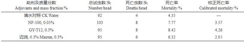 表3 3種助劑對蘋果黃蚜的致死率