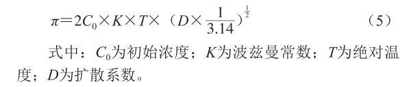 式中:C0為初始濃度;K為波茲曼常數(shù);T為絕對溫度;D為擴(kuò)散系數(shù)。