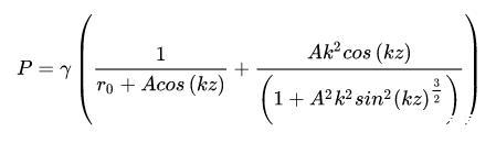 這里,是未受到擾動的水柱半徑,A表征擾動的大小,而k是波數(shù),表示擾動范圍的大小。很容易,我們可以計算出兩個方向的曲率半徑,進(jìn)而根據(jù)Young-Laplace方程計算出流體內(nèi)部各處的壓力(我們假定外壓為零):