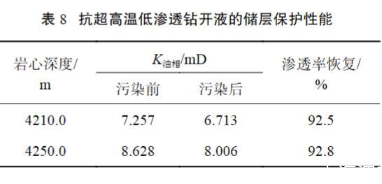 表8抗超高溫低滲透鉆開液的儲(chǔ)層保護(hù)性能