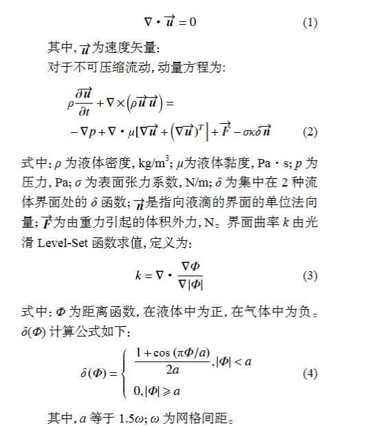 由于通過實驗觀測微米尺度的液滴?顆粒碰撞過程十分困難,故主要采用數值模擬方法開展相關研究。為求解多相流的界面形變問題,前人曾采用過Lattice-Boltzmann、Level-Set、VOF、CLSVOF等模型。由于前人研究案例中CLSVOF模型對液滴形態(tài)的模擬結果能與實驗結果高度吻合,筆者采用此模型對塵?霧碰撞過程進行模擬。