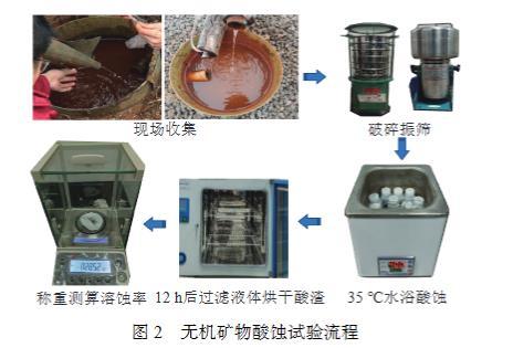 3)每隔2 h記錄溶蝕效果,酸浸12 h后過濾液體,收集烘干酸渣(于100℃烘箱中烘干12 h至恒重)計算溶蝕率,確定酸蝕礦物的最優(yōu)酸度。