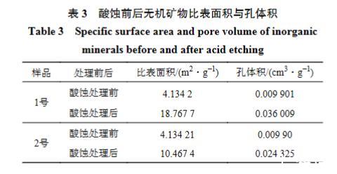表3酸蝕前后無機礦物比表面積與孔體積