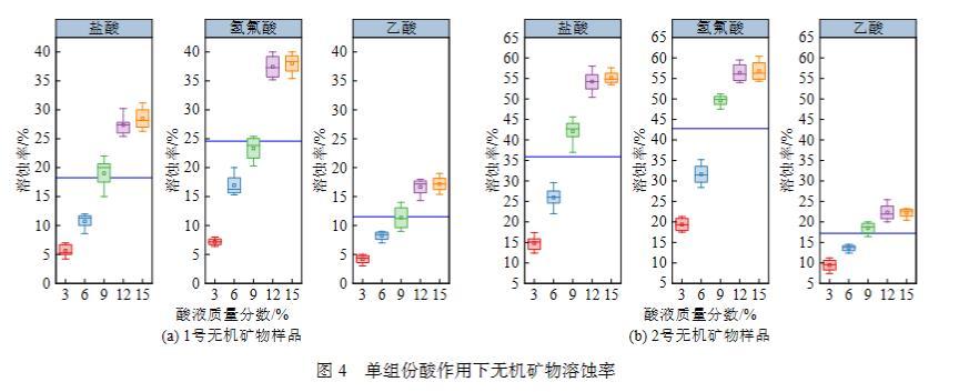 圖4單組份酸作用下無機礦物溶蝕率