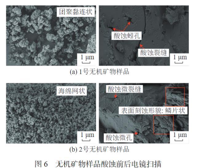 圖6無機礦物樣品酸蝕前后電鏡掃描