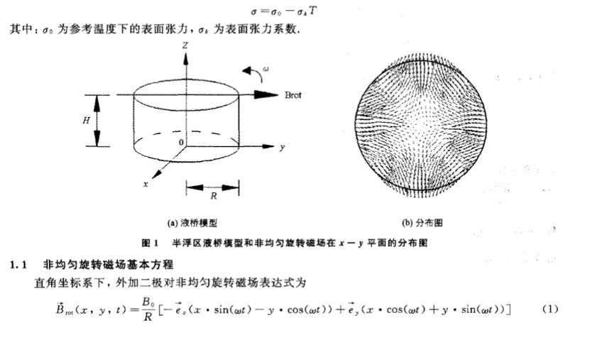 基于浮區法晶體生長中非均勻旋轉磁場對流控制研究工作鮮有的現狀,為了進一步完善外加旋轉磁場對浮區熔體的對流控制的理論研究,筆者引用了有限長-α模型的思想,建立了三維磁流體動力學模型,研究了微重力下外加二極對非均勻旋轉磁場對浮區熔體表面張力對流的控制作用。