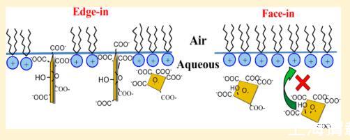 朗繆爾單層和朗繆爾?空氣中的Blodgett(LB)膜?水/水界面是典型的二維表面化學方法,廣泛應用于空氣中兩親分子的結構和性能研究?水/水界面,如蛋白質和脂質。25?27這些方法的一個顯著特點是從分子水平對層結構進行內在和精確的控制。由于GO薄片邊緣的羧基脫質子化,帶負電的GO和帶電荷的脂質之間預計會發生22,28靜電相互作用。空氣?水/水界面有望成為研究脂質和GO之間相互作用的理想場所,因為兩親性脂質很容易在界面上定向,極性/帶電基團合并在親水水相中,而非極性部分朝向空氣相。