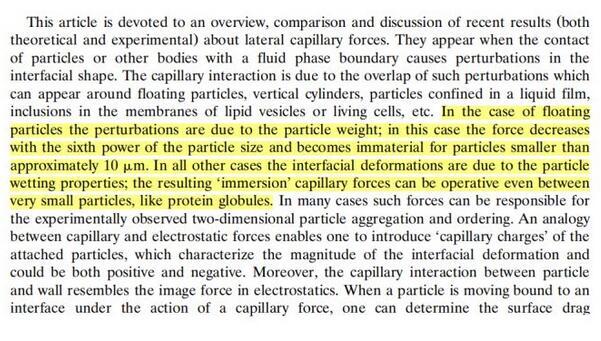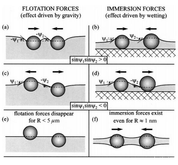 這里寫的也比較清楚,漂浮顆粒之間的毛細作用由重力引起,其他的情況則是由顆粒的浸潤性導致。如果有人還有疑問的話,歡迎留言討論。