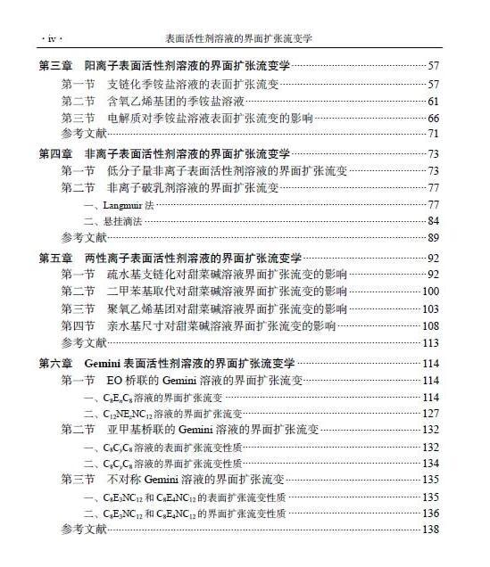 流體界面擴(kuò)張流變學(xué)還處于快速發(fā)展之中,因此本書主要介紹其方法和應(yīng)用實(shí)例,構(gòu)架復(fù)雜的新型研究手段與應(yīng)用之間的橋梁,讓具有基礎(chǔ)化學(xué)知識(shí)的讀者掌握界面擴(kuò)張流變研究手段。本書以表面活性劑溶液的界面擴(kuò)張流變學(xué)研究為核心,全面介紹界面擴(kuò)張流變學(xué)的基礎(chǔ)知識(shí),分類描述不同類型表面活性劑在空氣-水和油-水界面的擴(kuò)張流變性質(zhì);重點(diǎn)闡釋通過(guò)界面擴(kuò)張流變學(xué)研究手段獲得流體界面吸附分子相互作用及微觀行為的方式。在本書寫作上,避免煩瑣的數(shù)學(xué)推導(dǎo)和理論描述,以界面擴(kuò)張流變方法的物理化學(xué)意義和儀器應(yīng)用為重點(diǎn),強(qiáng)調(diào)可操作性。