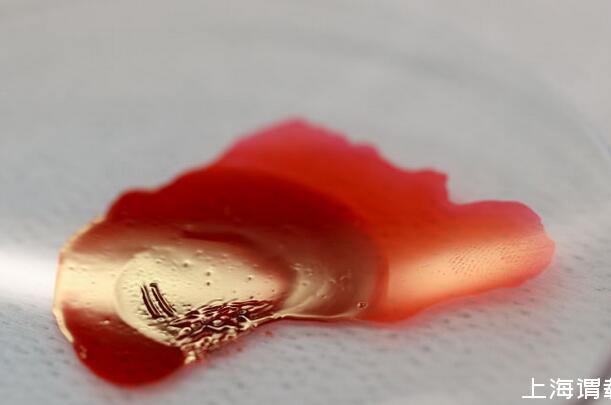 至于sheen,則不僅僅是簡單的層析,因為直接把帶有sheen的墨水滴在KIMTECH上你并不會發(fā)現(xiàn)任何光澤。因此我們換個方法,把約1ml的寫樂四季彩圍爐里(它是橘黃的主體,金色的sheen)滴在玻璃表面皿上,再送入烘箱把水分去除——