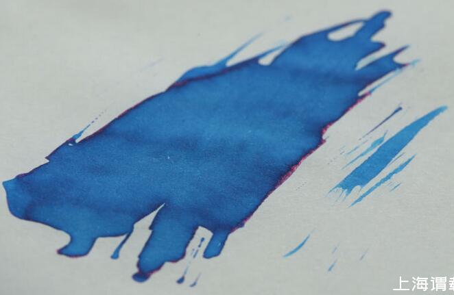 萬寶龍的寶馬藍(lán)這款是我日常使用最多的,它在邊緣干透后會有一層金屬色澤的反光,這就是sheen,藍(lán)色墨水出紫紅色的sheen是相對比較常見的