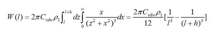 始終ρ1為無(wú)限大平板物體單位體積的分子數(shù)(分子密度);h為平板的厚度;l為單個(gè)分子到平板的最近距離。