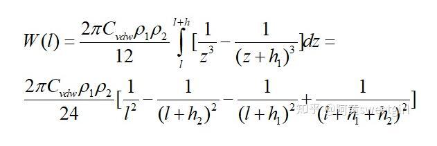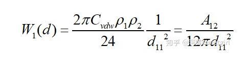 同樣,若取l為兩相界面處分子間的距離d12,且兩半無(wú)限體為兩種不同的物質(zhì)時(shí),則互作用勢(shì)變?yōu)?