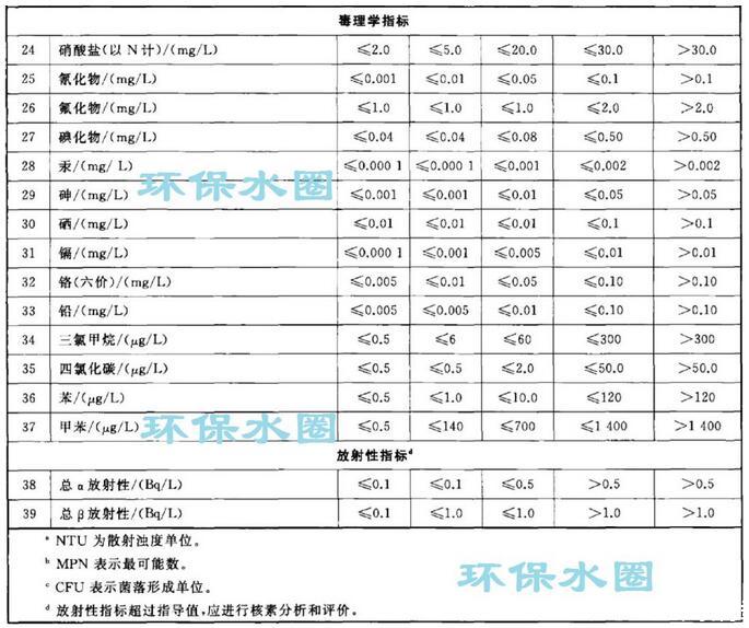 依據我國地下水質量狀況和人體健康風險,參照生活飲用水、工業、農業等用水質量要求,依據各組分含量高低(pH除外),分為五類。