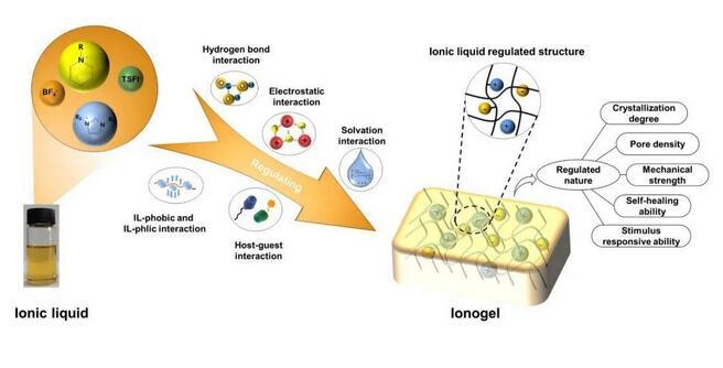 圖2.離子液體調(diào)控離子凝膠的結構和性質(zhì)的示意圖