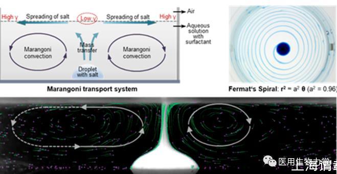 馬蘭戈尼效應(yīng)驅(qū)動液體鋪展及其生成圖案,以及液面下方溶液中的馬蘭戈尼對流